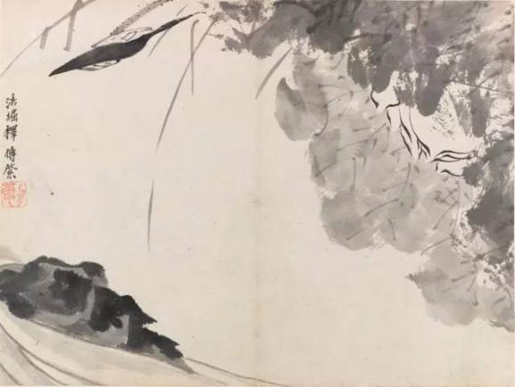 其花鸟画风,可分为三个时期,50岁以前为僧时属早期,署款“传綮”、“个山”、“驴”、“人屋”,多绘蔬果、花卉、松梅一类题材,以卷册为多。