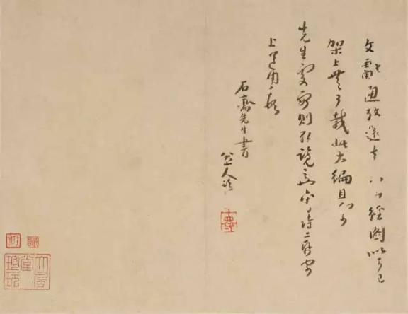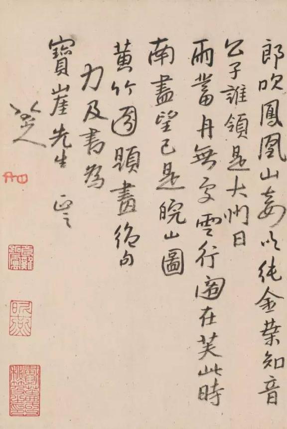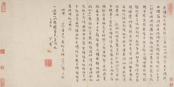 这就是他的三者取胜法,如在绘画布局上发现有不足之处,有时用款书云补其意。