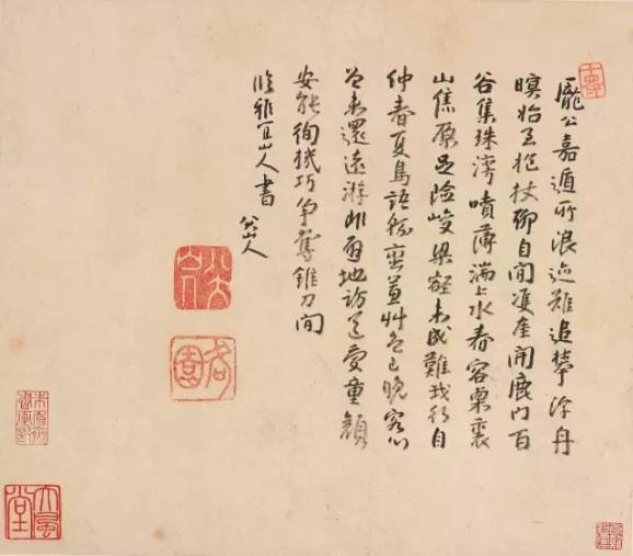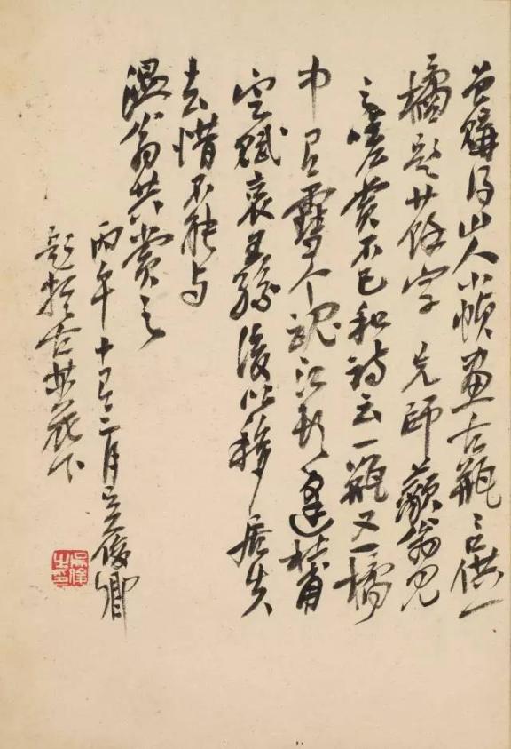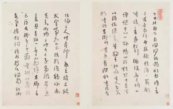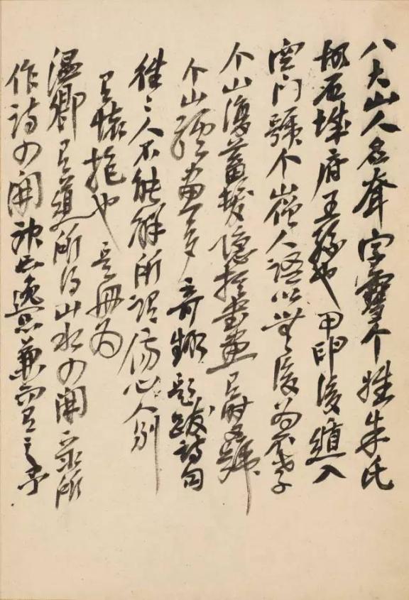 可以认为八大山人晚年艺术上的杰出成就,在很大程度上与后期诗文风格特点的转变是密切相关的。正如八大在《书法山水册》中一节题识反问:“文章非人间世之书画也耶?”八大晚年诗文的突出特点,就是建立在其艺术观与人生观相互统一的基础上,这也正是八大晚年诗文的精髓。