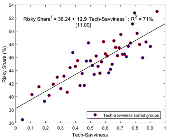 不同的个人和家庭,对于风险的承担能力不同。那么金融科技对于风险投资的促进,能否与投资者的投资需求相匹配?笔者采用了经济学理论中的经典指标来衡量投资者的风险承受能力。分析显示,金融科技(移动支付)对于风险投资的促进作用,在风险承受能力较高的投资者身上体现得更明显。