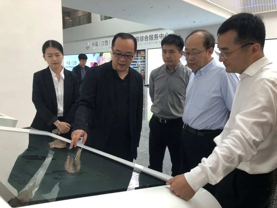 随后,方立新一行来到中国江西针织服装创意产业园,仔细参观了大数据屏、共享设计师中心、网红直播中心、面料中心、样衣展示中心等服务平台,详细了解了针织产品展示与推广、产品研发、产品认证、专业培训、检测业务等常态服务情况。在了解到产业园区复工复产期间,通过直播电商开拓营销渠道,以企业供货、平台选货、主播卖货的销售新模式取得良好经济效益后,方立新为我区流量经济发展竖起大拇指。
