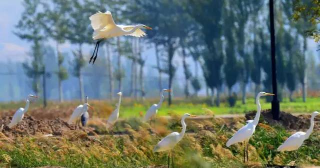 在五佛乡鱼虾池塘和刚刚收割完的稻田周围成群的白鹭时而在蓝天下轻盈飞舞,时而在鱼虾池塘边漫步休栖觅食,构勒出一幅人与自然和谐相处的美丽画卷。