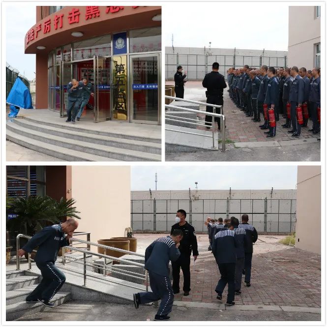 西青监狱五监区组织全体罪犯开展消防应急演练。