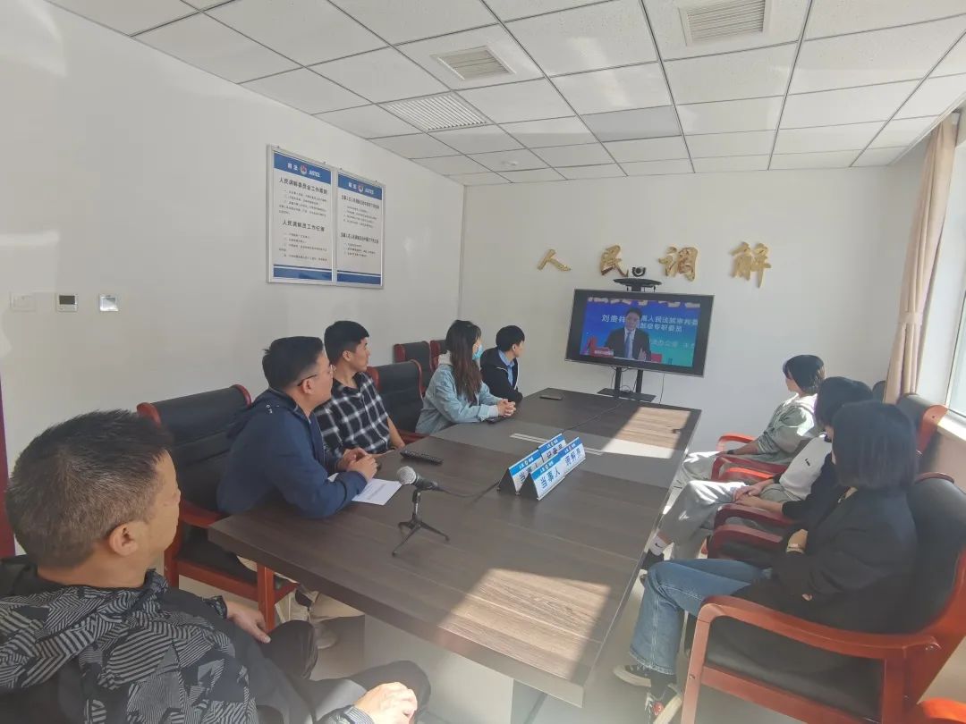 西青区司法局大寺司法所组织全体干部职工学习观看《民法典》公开课。
