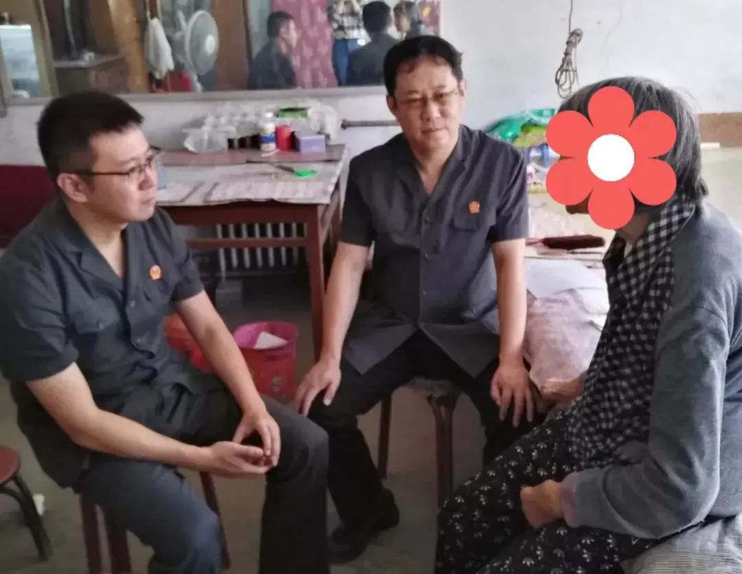 蓟州法院邦均法庭法官到一老年当事人家中,入户为其办理立案手续,受到当事人称赞。