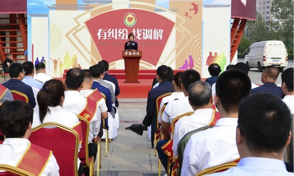 津南区司法局在区海河故道法治公园举办首届人民调解工作宣介会。