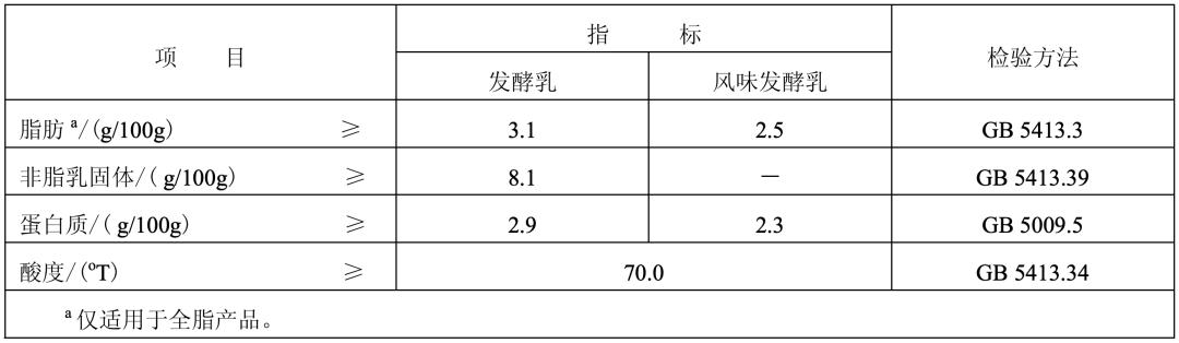 我国最新的《发酵乳》国家标准中要求,发酵乳的蛋白质含量≥2.9%,风味发酵乳的蛋白质含量≥2.3%,如果低于2.3%就不是酸奶,而是酸奶饮品了。