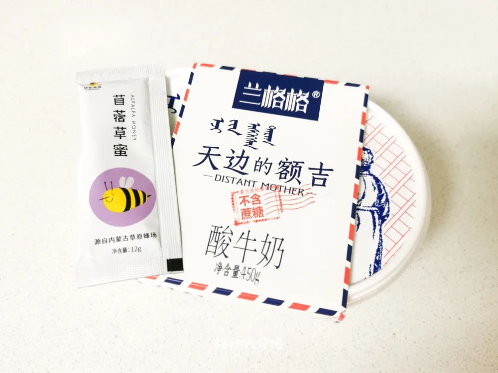 如果觉得酸,还可以搭配来自同一牧场的苜蓿蜂蜜。自有牧场上种植的是紫花苜蓿草,这是一种优质的牧草,不仅奶牛们爱吃,制作出的蜂蜜也很清香。