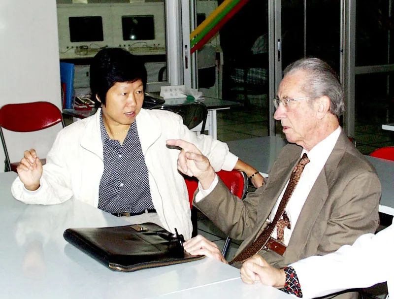 1999年,董超华与来访的原美国国家环境中心主任交谈。在主持顶层设计方面,董超华打破传统工程建设理念,做到需求统筹,尤其是数据处理技术方案的星地一体化设计。总体技术班子从卫星工程的整体性、层次性和关联性出发,将用户纳入工程系统建设的总体架构。在卫星观测能力设计中,高度关注一线用户的反馈,把国家气象中心、部分省气象局等不同特色应用需求转化为卫星和载荷的技术性能指标。“大系统”和“小平台”同步设计开发,使卫星资料在各地推广应用节奏大大加快。