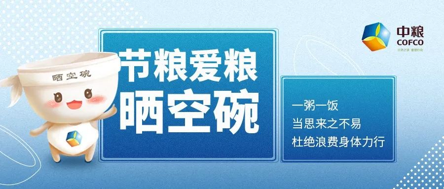 长按识别上方图中二维码/点击“阅读原文”/关注服务号@中粮COFCO 到下拉菜单“晒空碗打卡”都可参与“爱粮有我晒空碗”签到打卡活动,还可以赢取中粮好礼!在世界粮食日暨全国粮食安全宣传周之际