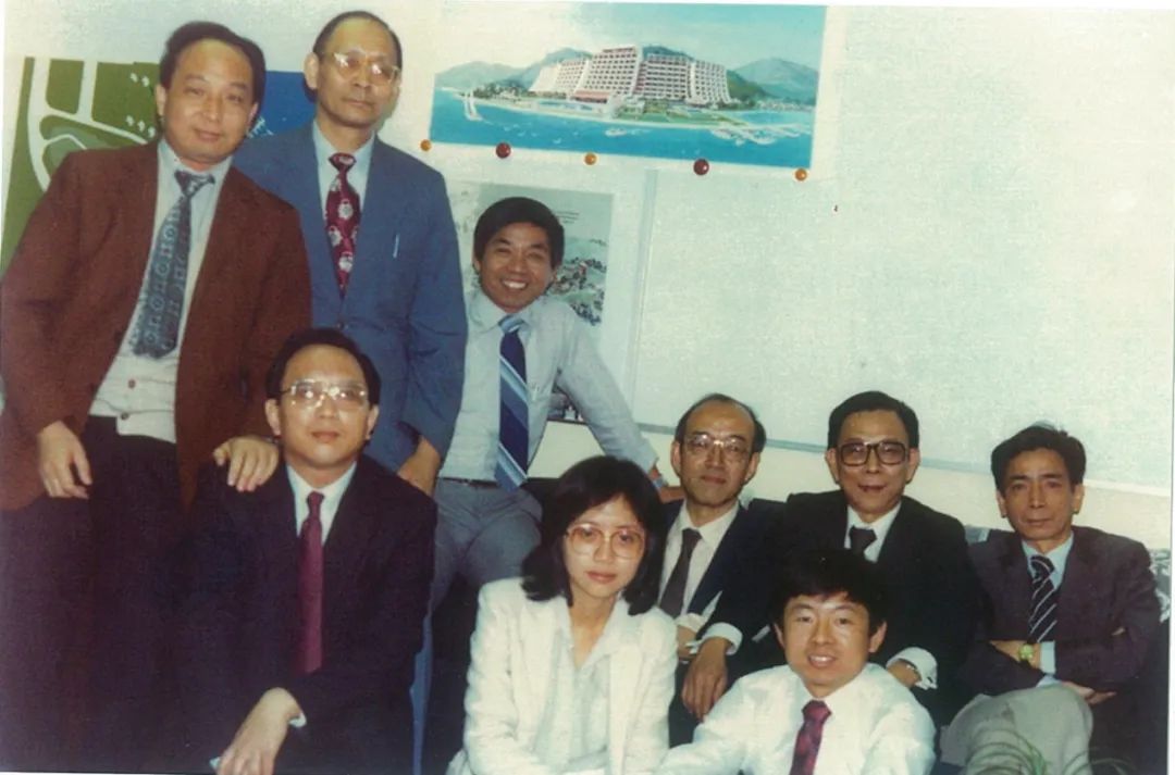 华森承接的第一个设计项目蛇口南海酒店。建筑设总陈世民(左后一)、结构设总杜焕文(左后二)、张祥宣(左中二)、黄建才(左后三)、吕克胜(右中一)、程永年(左中一)等四人参与设计。