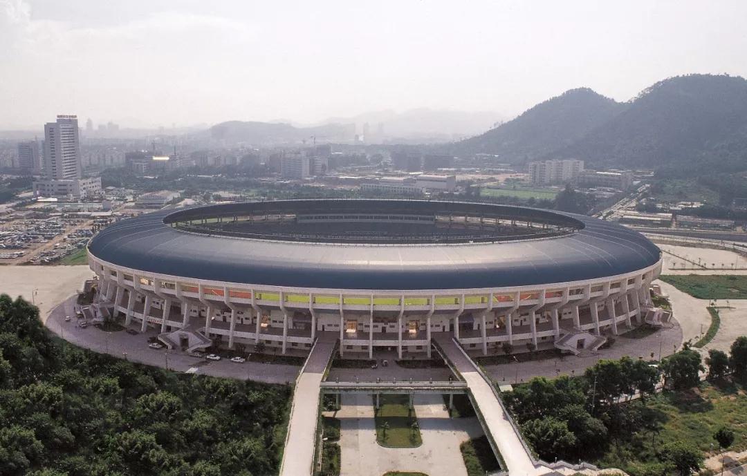 深圳第一座体育馆深圳体育馆,是国内建筑行业第一个“鲁班奖”获奖项目,整个建筑呈正方形,造型宏伟、坚实,四根拔地而起的立柱支撑着巨大的棚顶,颇具顶天立地之气度,全新、简洁的形象把体育建筑刚劲有力的韵味塑造得恰到好处。这种选用四支点球节点钢管平板网架结构的方案,地面拼装整体顶升就位的施工方法,是国内首次使用。