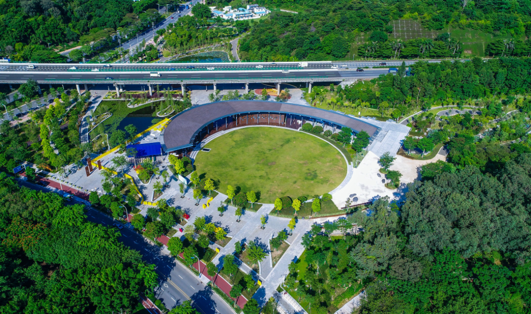 公园设置了主入口广场、阳光草坪、空中栈桥、艺术廊架、活力跑道、景观厕所、儿童乐园等,通过园路将这些“交流环”贯穿起来,形成系列开放空间。