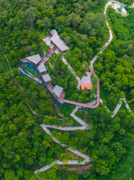 放眼望去一片绿意,高铁在其中穿梭往来,这就是三山森林公园给人的最初印象。郁郁葱葱的林木形成城市的“绿肺”,身在其中能让人感到平静。