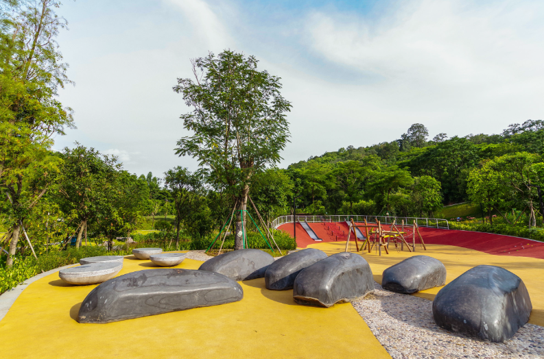 公园内植被丰富,草木葱郁。绿地与游乐设施相结合,不仅能为儿童提供游乐场所、切实提升居民健康,还能为城市一角披上绿色衣服,为城市绿化添砖加瓦,为社区与城市带来全新活力。打卡指南