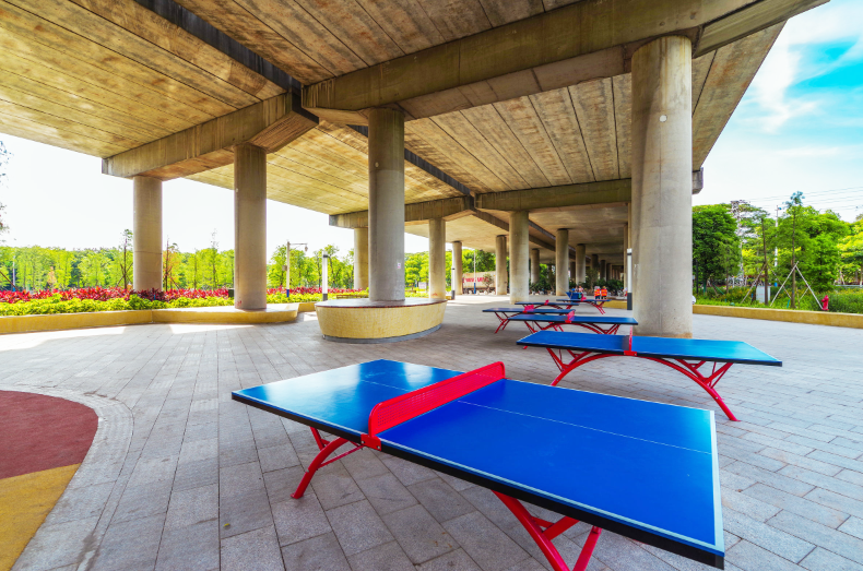 高架桥下还设有乒乓球场、篮球场、健身攀爬等设施,在一片绿意中运动健身,能让身心获得更好的放松。