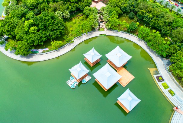 水上树木、水上亭台是公园的特别之处。行至亭台,入内休息,不仅能享受湖面微风带来的清爽舒适,还能观赏水中植被,拥有被树木环抱的感受。