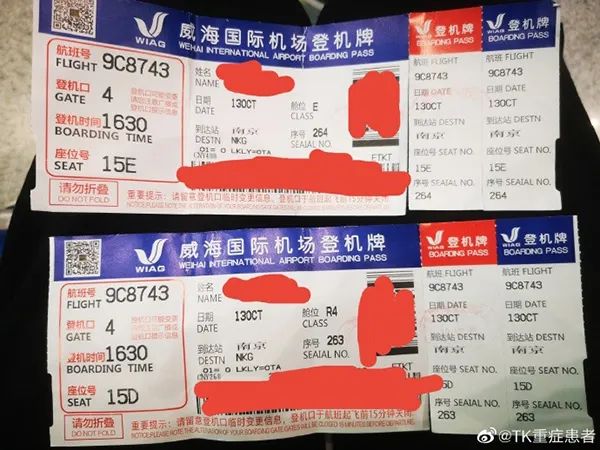 10月14日凌晨,网友于先生在微博上发文称,10月13日14时许,他与女朋友在山东威海大水泊机场准备乘坐春秋航空9C8743航班前往南京就医。