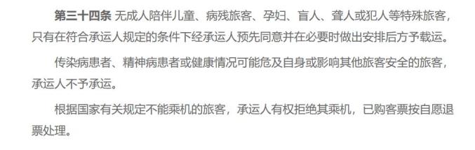 根据中国民用航空总局发布的《中国民用航空旅客、行李国内运输规则》第三十四条规定,传染病患者、精神病患者或健康情况可能危及自身或影响其他旅客安全的旅客,承运人不予承运。