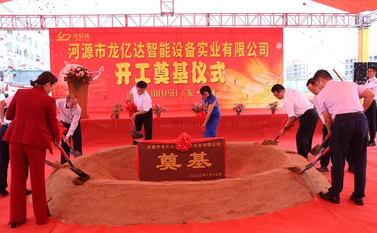 15日上午,位于河源高新区的河源市龙亿达智能设备实业有限公司项目动工奠基。河源高新区党工委书记孙锋,党工委副书记、管委会主任刘大荣,及班子成员、各级调研员、各部门负责人、企业代表参加奠基活动。