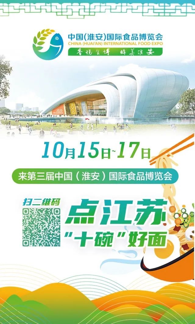在10月15日举办的第三届中国(淮安)国际食品博览会上,江苏省餐饮行业协会、第三届中国(淮安)国际食品博览会组委会联合公布“2020江苏十大面条品牌”。