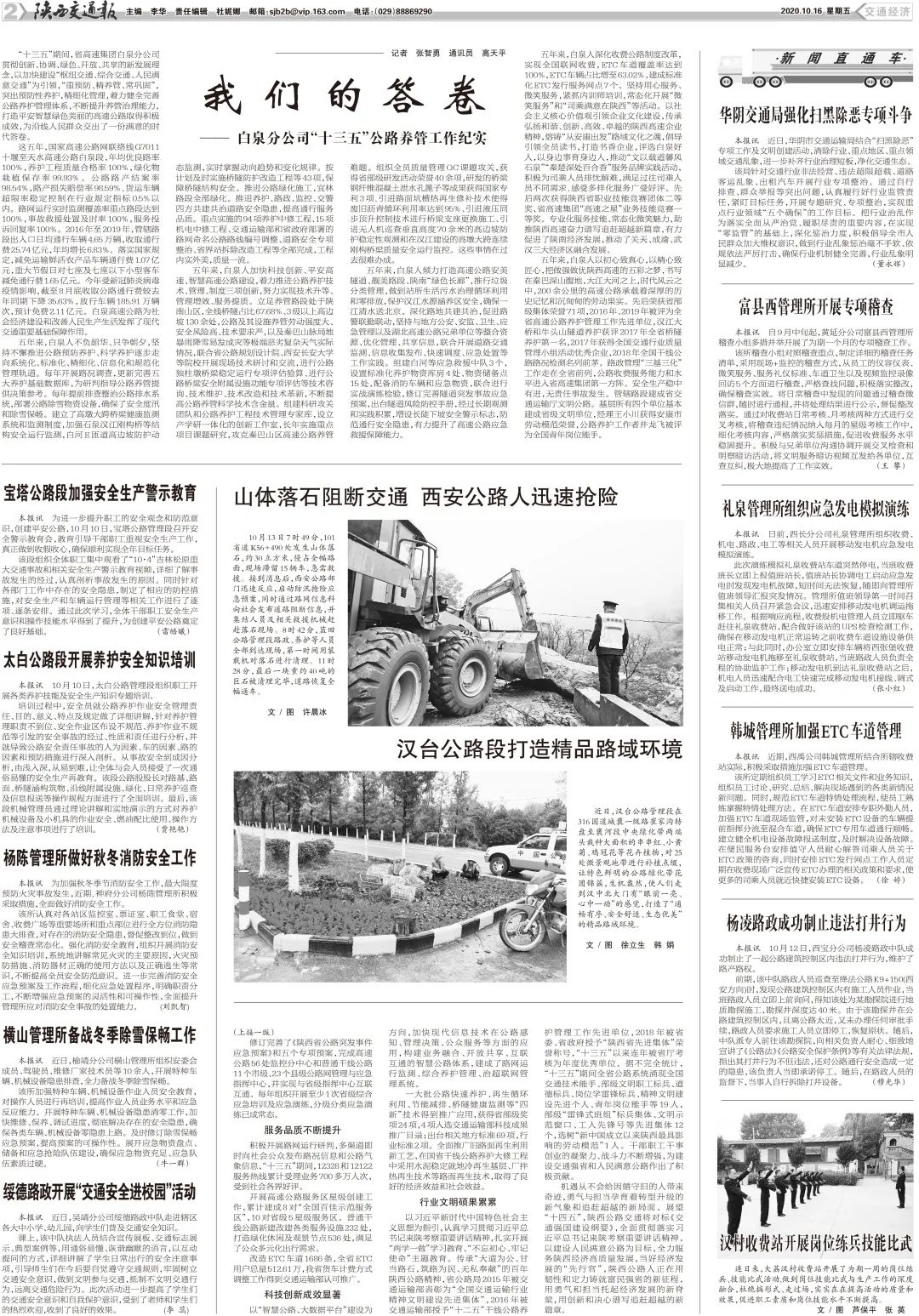 原标题:《陕西交通报|2020年10月16日新闻汇》