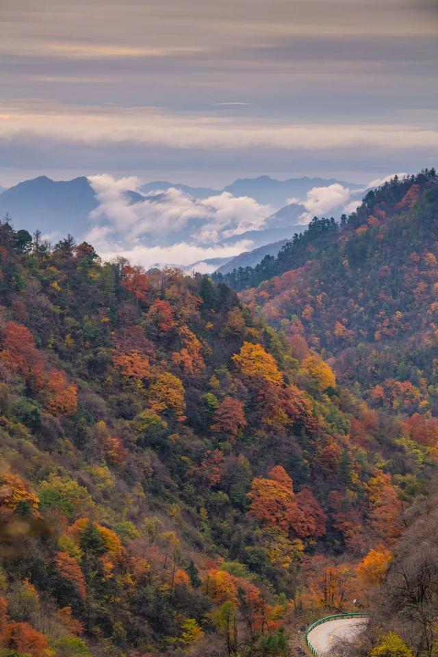 太子岭,是一段平均海拔在1500米以上的盘山公路,停车路旁即身临云雾仙境之中,云雾缥缈间,从容俯视群山红叶,丹树千林,留坝红叶的磅礴盛宴便徐徐展现。