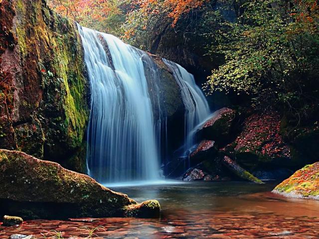 红叶、大山、云海、溪流、草场,