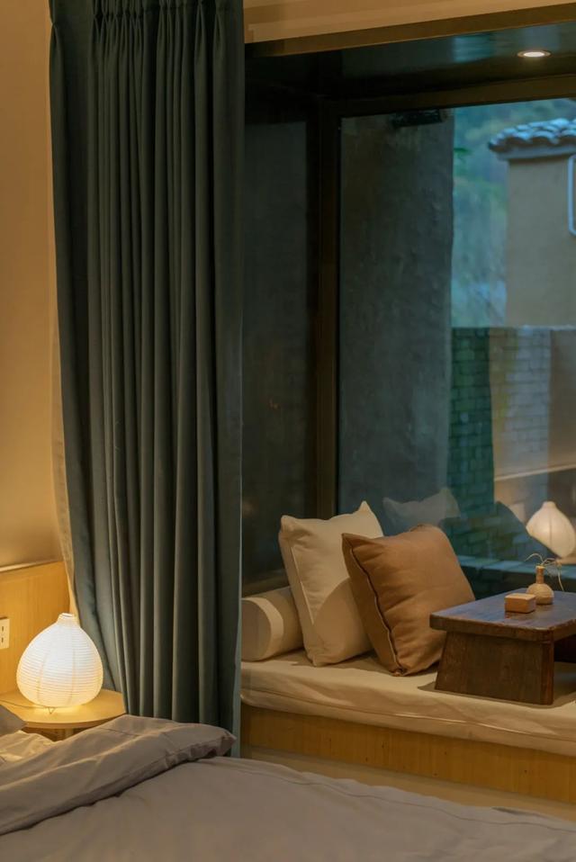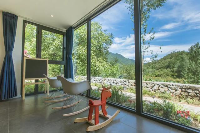楼房沟精品民宿,共有9处院落,由村里闲置的老房子改造而成的,散落在沟谷的两侧,背山面水,错落有致地排开,与周围的山野环境相融合。每一间房子都安装了空调和地暖,足以抵挡住微寒的秋意。