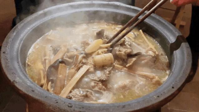 西洋参土鸡锅,特色土鸡炖西洋参,干笋吊的汤底,配上时令菜蔬,现炸酥肉和野生山药,用管家大姐现做辣椒酱和一点生抽,几滴香油蘸食,山间烟火美味不过如此。