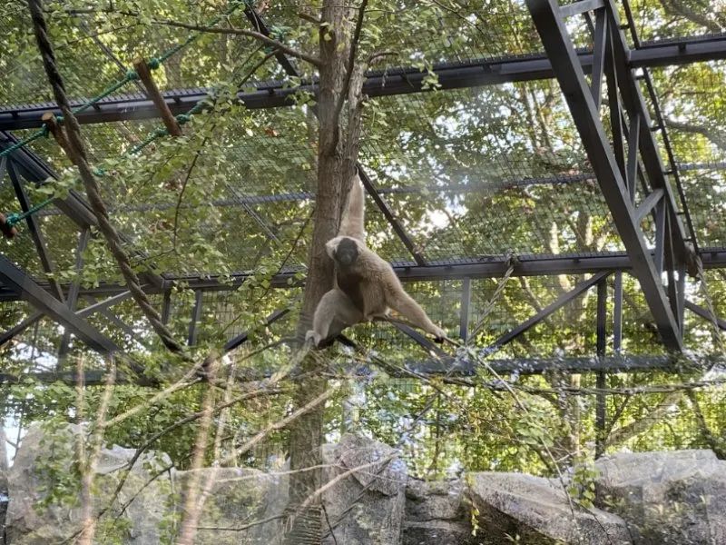 新展区有点大 大家找长臂猿的时候得费点功夫~看着长臂猿的豪宅,对面的黑叶猴坐成一排不断投来羡慕的目光,可谓是柠檬精本精了~