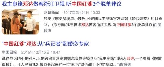 公开资料显示,我主良缘的主体公司是深圳我主良缘信息科技有限公司,由邓达于2007年创立。在部分新闻报道里,邓达被称为“中国红爹”。