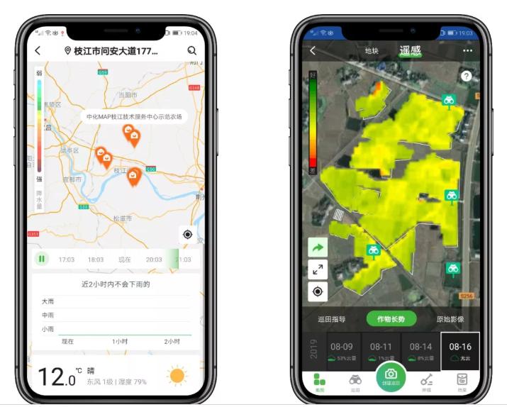 中化农业MAP自主开发的智慧农业系统,依托农业大数据和信息系统,能够实现远程农场管理、遥感巡田、精准气象、病虫害预警、关键农事提醒、品控溯源等功能,在疫情期间封村封路的特殊情况下,为全国6500多万亩耕地实现“云监管”。通过智慧农业系统,所有MAP智农线上农户全部实现与MAP农艺师一键呼叫绑定,农艺师24小时在线,贴心服务农户。