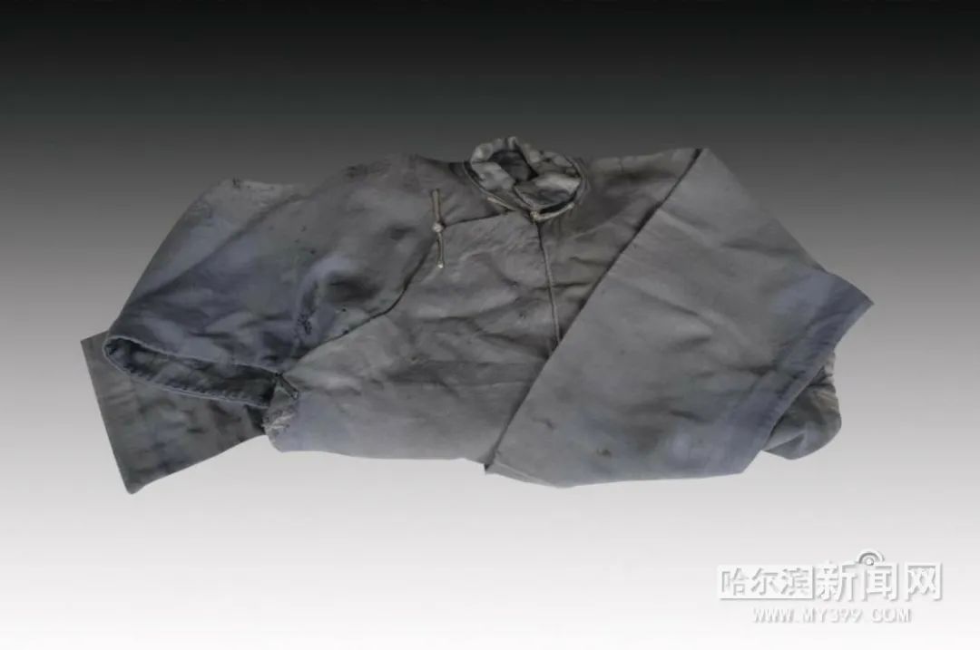 这两件遗物是杨靖宇1931—1933年在哈尔滨进行抗日活动时穿的大衫、用过的褥子。褥面是灰色布料、四周镶黑边,褥里是白布。