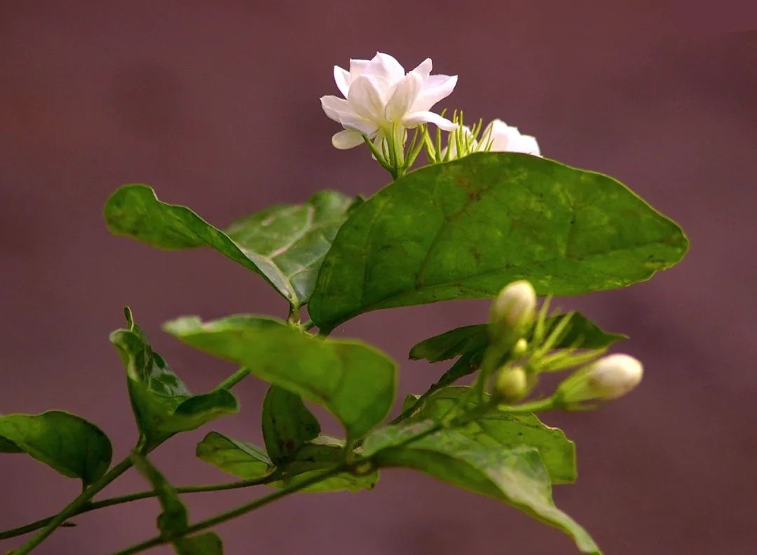 茉莉是素馨属的代表品种。花朵又分为单瓣和重瓣,重瓣茉莉又称“虎头茉莉”,栽培较为普遍,花期较长。为常见的芳香性盆栽花木。茉莉花多作为制作花茶的原料,一般采摘八分开的花苞熏制茶叶,因为此时的香气最为浓郁。栀子