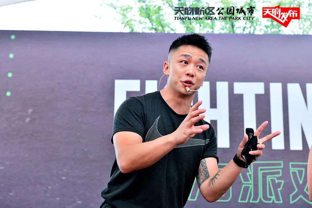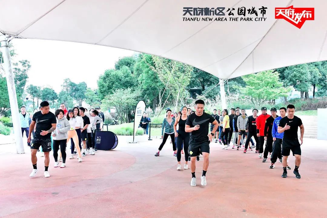 周楠现场,我们还发现了一位真正的“客人”,家住草堂路的健身爱好者周女士,她表示之前参加过NTC课程,对此非常感兴趣,在成都很难得有这种大型的户外活动,这次得知是Nike中国区NTC签约教练方奕翔在此授课,也是慕名前来参加。