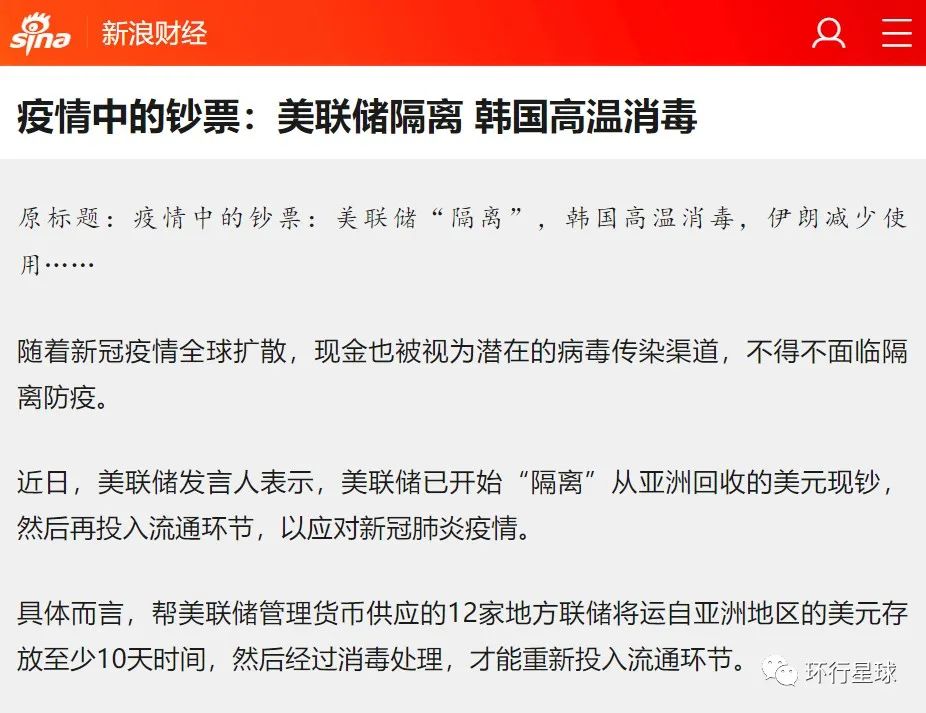 多国央行也曾因为纸币有传播病毒的风险,早就对这些“风险较高”的纸币实施了隔离和高温消毒,在新冠病毒大规模爆发之前,中国就曾对纸币进行消毒处理,而据韩国央行官员日前透露,从地方银行送到央行的纸币均需“隔离”两周才能继续流通,一些纸币甚至会被直接销毁。由此可见,纸币的传播对于新冠病毒的影响或早已被担忧。