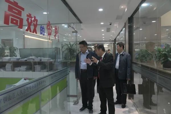 在审判执行辅助事务中心,李彬副院长一行实地参观了排期送达、卷宗扫描、联络咨询、智慧研发、智能中间柜等区域,听取了审判辅助事务中心整体情况和各岗位职能设置、运转模式等情况的介绍。