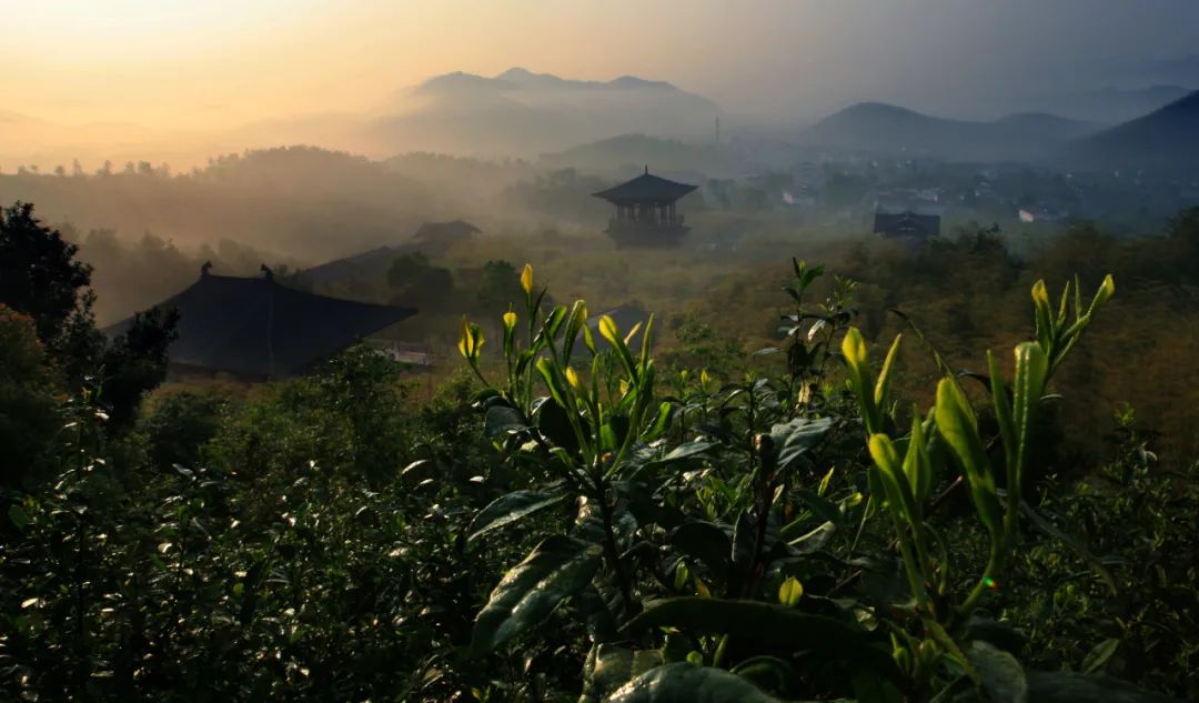 湖州长兴北部与安徽广德、江苏宜兴交接的丘陵山区,把介于两山峰之间的山谷称作“岕”,“岕”通“嶰”,本地音读[kǎ]。自古好茶出岕内,正是由于陆羽的极力推荐,产自岕里的宜兴阳羡茶和长兴紫笋茶先后成为贡茶。从唐大历五年(770)开始,顾渚山创立贡茶院,监制贡茶事务由湖州刺史直接主持。因此,每年立春后四十五天,颜真卿必依例入山主贡茶之事,至谷雨日还郡。他从大历八年来湖,至十二年离任,期间有五次入顾渚山主持监制贡茶的经历。每年采茶时节,湖常两州官员聚集到交界的山上督造贡茶,于是便共同修建了一座亭子叫做“境会亭”,在亭上欢宴,品判初茗。虽然颜真卿没有留下有关诗文,但可以想象,他肯定与常州刺史独孤及(大历九年至十二年)于境会亭上,“紫笋齐尝各斗新”。