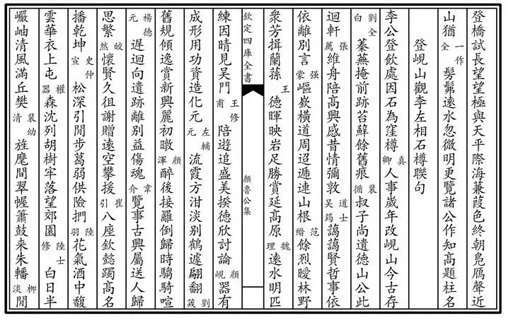 《水堂送诸文士戏赠潘丞联句》《颜鲁公集》收录颜真卿存世诗及联句约30首,多为交游酬和之作。我们发现除了《刻清远道士诗因而继作》大历六年(771)作于苏州虎丘,《使过瑶台寺有怀圆寂上人并序》大历十三年(778)作于陕西昭陵途中瑶台寺。其余20余首诗作及联句均作于湖州刺史任上。在湖州的任职期间,发起并参与其中的浙西联唱则展现出了明显的游戏性质,《水堂送诸文士戏赠潘丞联句》就是其中之一,水堂在湖州城中霅溪西岸“碧澜堂北汀风阁后”。颜真卿刺湖时候的联句有时极尽滑稽、戏爐之能事,通过对日常生活的调侃消解诗道诗艺的崇高,如下面两首: