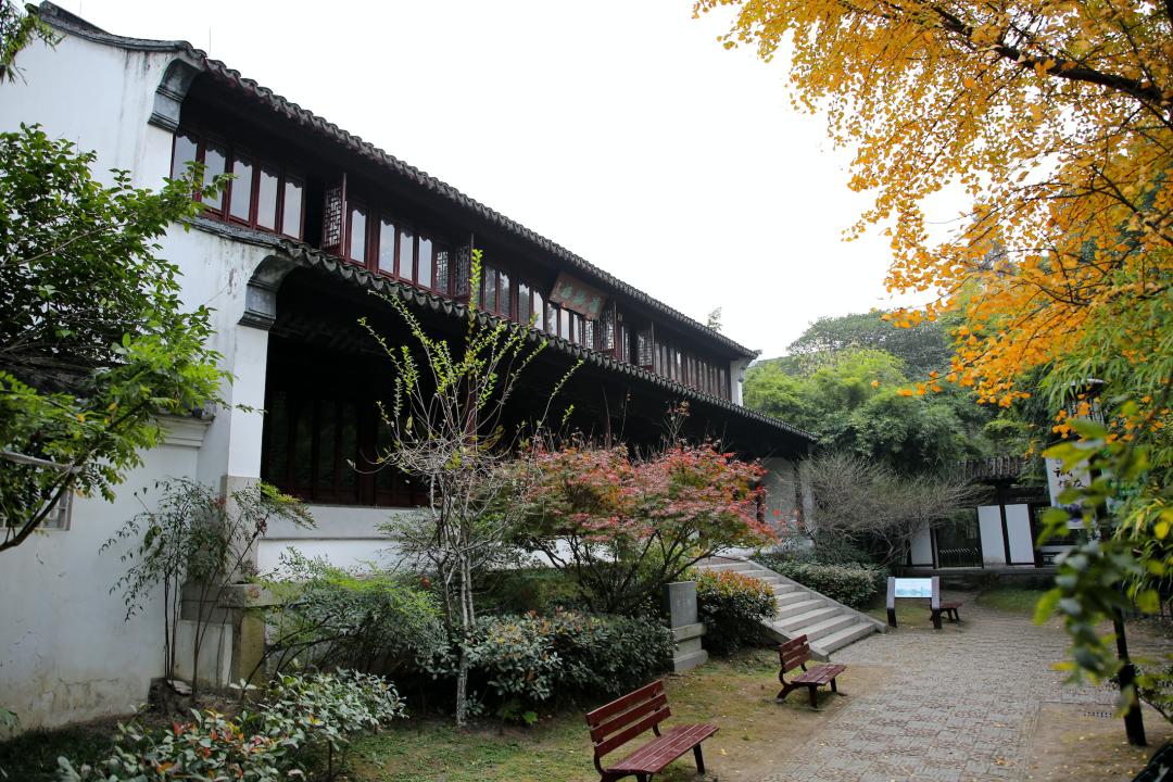 韵海楼秋色《韵海镜源》是一部集文字与音韵大成的巨著,它既是类书,也是一部韵书、字书。隋唐以后文字、声韵、训诂之学,总称小学。《颜氏家训.勉学篇》说:“夫文字者,坟籍根本。世之学徒,多不晓字。……不知书音是其枝叶,小学乃其宗系。”小学是颜氏之家学,从颜之推传到颜真卿,已有六世,人才辈出,多有成就。正因为是家学渊源,鲁公十分看重《韵海镜源》的修撰。颜真卿自幼研习音韵和文词训诂,从28岁就开始着手准备编纂《韵海镜源》,他在《杼山妙喜寺碑》说,“真卿自典校时,即考五代祖隋外史府君与法言所定《切韵》,引《说文》、《苍》(《三苍》)、《雅》(《尔雅》)诸字书,穷其训解,次以经史子集中两字已上成句者,广而编之,故曰‘韵海’;以其镜照原本, 无所不见,故曰‘镜源’”。早在平原太守任上已经开始修订条目,终因战乱中止;后来在抚州任上又增而光之,虽成规模,仍不合意。到了湖州刺史任上后“以俸钱为纸笔费,延江东名士萧存、陆士修、裴澄、陆羽等十余人,笔削旧章,该搜群籍,撰定为三百六十卷”。颜真卿在日常处理公务的间隙,常与陆羽等共同讨论编纂《韵海镜源》的事,地点在州治和放生池两处,并且在州治后建了楼,并取了和书相关的名字:韵海楼,宋人留元刚所编《颜鲁公年谱》载:“终事于甲寅(大历九年)春也。郡有韵海楼,未徙杼山时所建。”可知韵海楼建于大历八年夏秋时节。