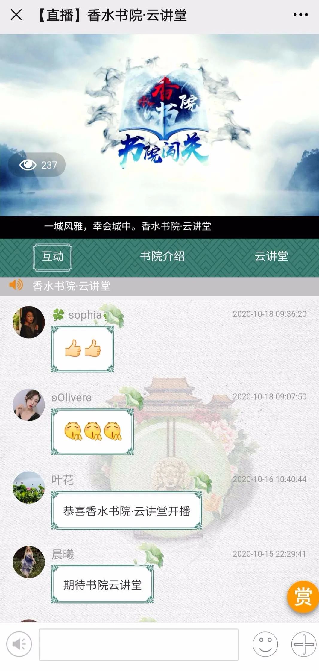 香水书院 云讲堂一城风雅,幸会城中! 欢迎您来到风华满园的城中区香水书院!