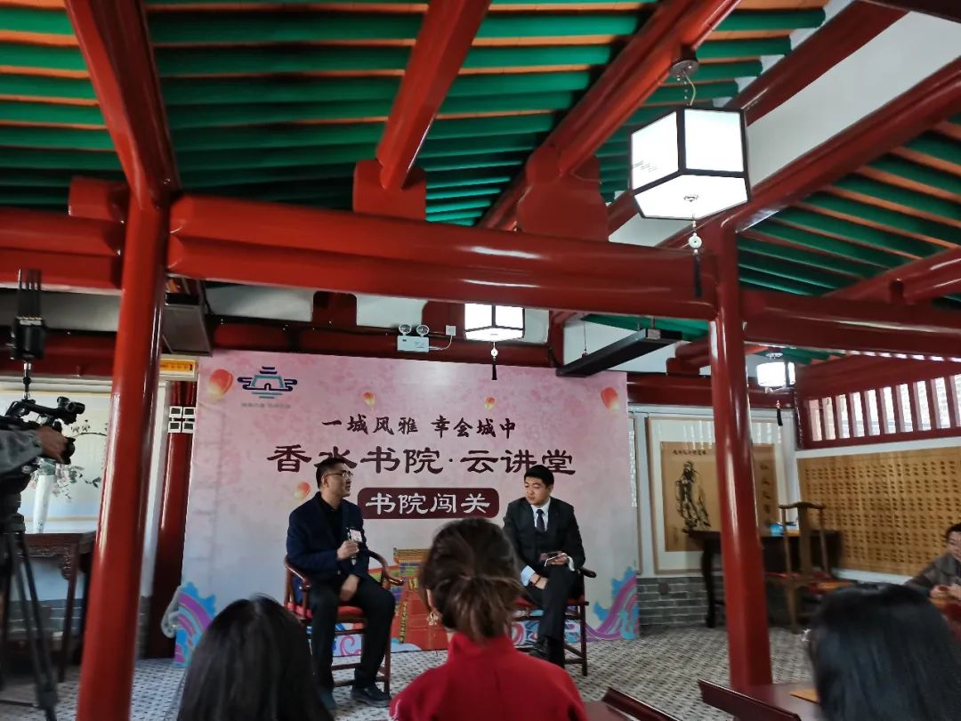 每个月的月中和月末,香水书院会在网上进行“香水书院”云讲堂的直播,不同研究领域的文化专家都会来到这里为大家传授知识,不管你是在西宁、还是外地、又或是海外,只要你想了解西宁、青海本地的河湟文化、民俗民风、非遗传承,以及国学、文学、哲学等等方面的文化知识,都可以观看“香水书院”云讲堂的网络直播。“香水书院”云讲堂首播