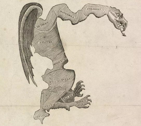 (图源网络)1812年,马萨诸塞州议员为了政党利益,在埃塞克斯县边缘,划出了一个形状奇怪的区域,格里蝾螈一词由此而来。