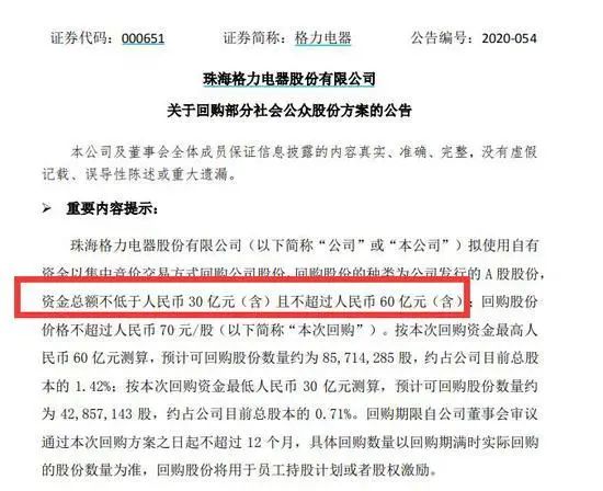 10月13日,格力电器再度抛出了最高60亿元的回购计划。