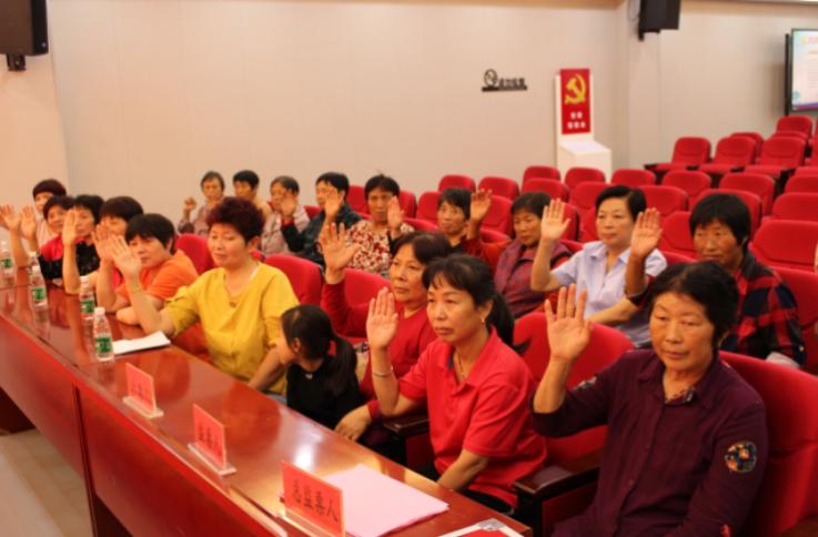 近年来,广场舞因其良好的健身效果和喜闻乐见的形式,受到越来越多居民特别是中老年妇女群众的喜爱。为进一步加强党对妇女工作的领导,让妇联组织在新领域、新业态、新阶层、新群体中继续得到拓展延伸,充分发挥妇女组织团结引导广大妇女投身经济和文明建设的积极作用,在区妇联的精心指导下,伍佑街道妇联在“思想正能量、文艺能力强、人员队伍规范、积极参加公益活动”的珠溪姐妹广场舞蹈队中成立妇联组织。在成立仪式上,参会妇女代表投票选举出妇联主席1名、副主席1名以及执委3名。