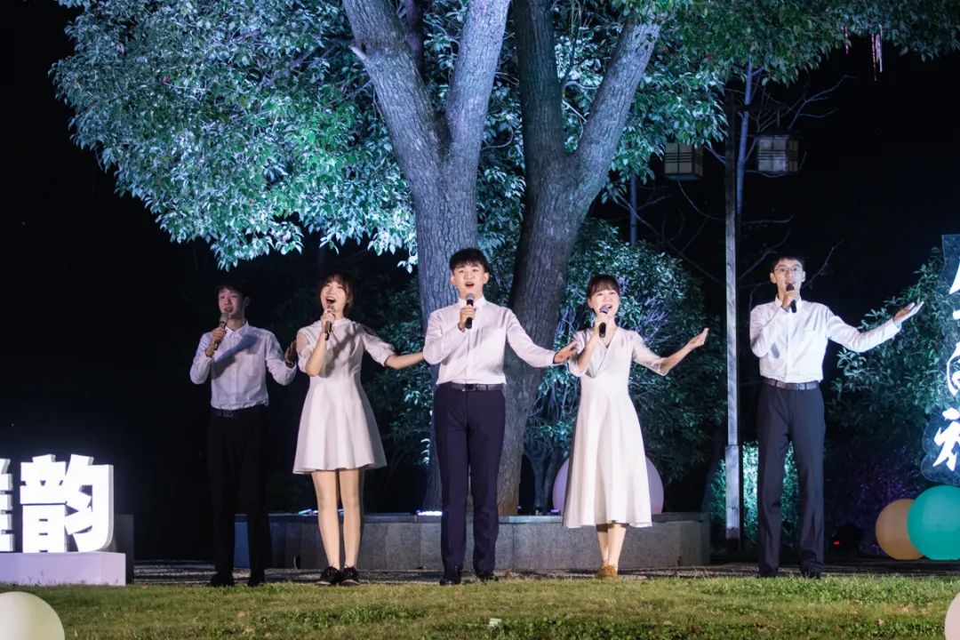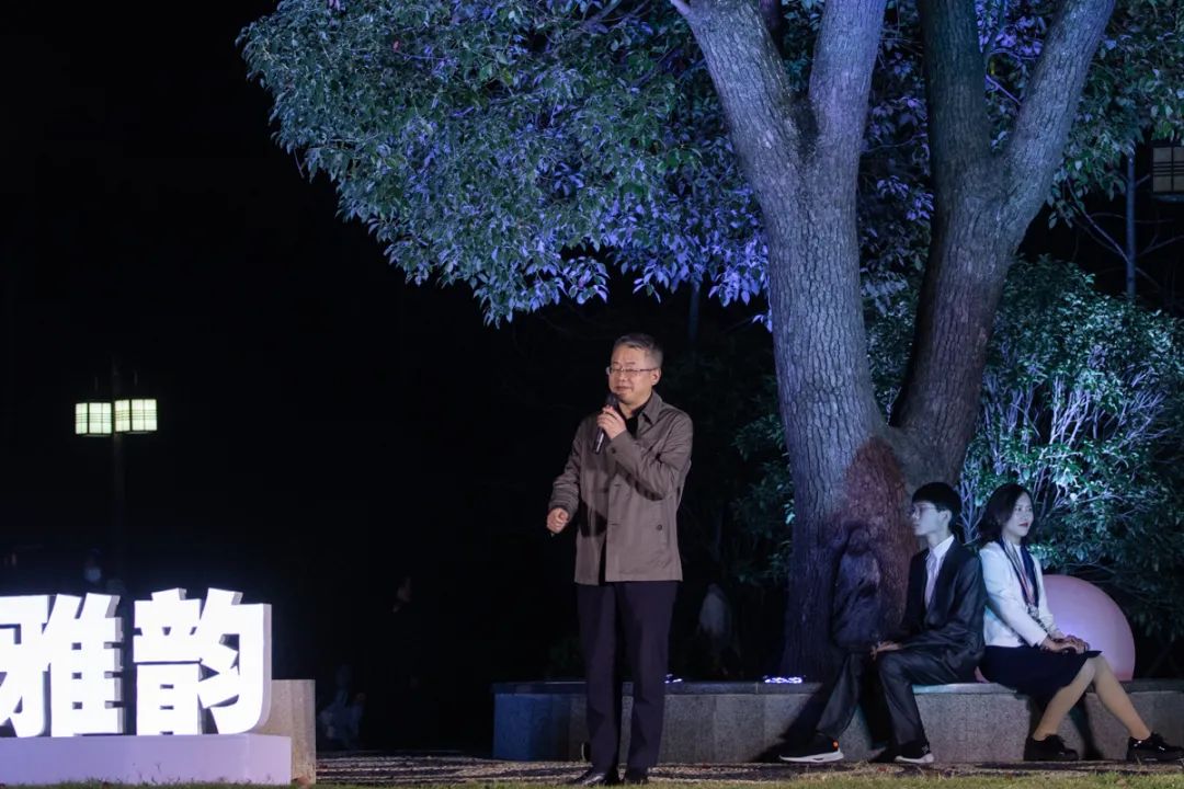 ▲活动现场( 吴奕彤 摄)10月18日晚,夜色融融,微风徐徐,美轮美奂的灯光温柔地洒落在24节气广场,以大树为幕,以草地为席,以色彩斑斓的帐篷为衬的舞台上,一年一度的“金秋雅韵”诗文朗诵会在此举行。校党委书记高翅、党委副书记、纪委书记廖济忠、副校长青平、各相关职能部门负责人和师生们一起,以文载道,共诵雅韵,以诗言志,礼赞生命。
