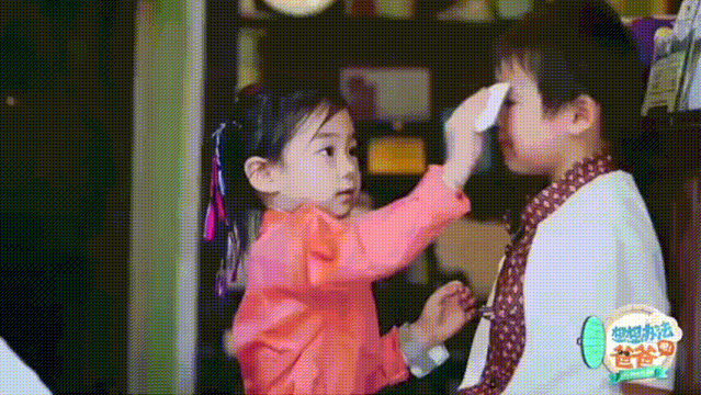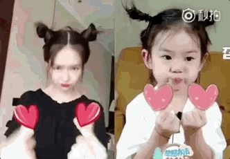 嘴里念叨着,手上比着心,在丸子头的修饰下,像极了闹腾的小哪吒。