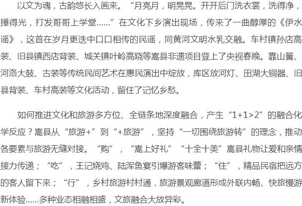 喜欢此内容的人还喜欢原标题:《从“伊水谣”到“黄河颂” ——解码坚定文化自信之“嵩县故事”》