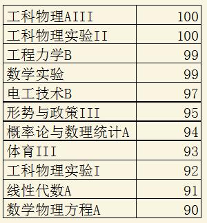大二学年综合排名专业第一,共16门课程中,有11门课程取得了90分以上的好成绩。